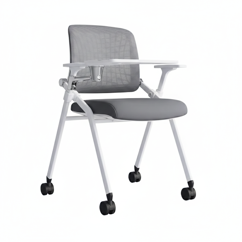 • With armrest, castors and writing tablet